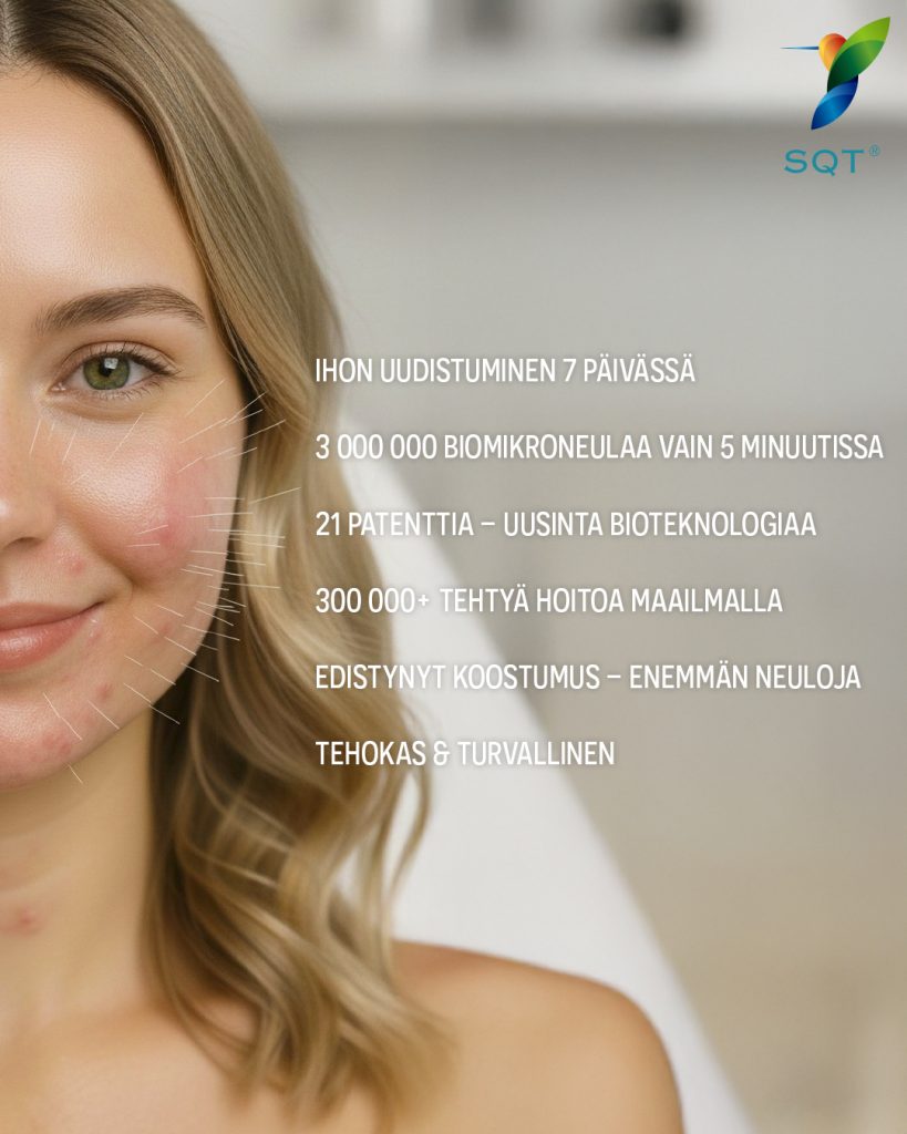 Medikaalinen biomikroneulaus on uusi, kivuton ja turvallinen hoitomenetelmä, joka neulaa tehoaineet syvälle ihoon. Biomikroneulauksen miljoonat pienet neulat jäävät ihoon aktivoimaan, uudistamaan ja kiinteyttämään sen eri kerroksia 48–72 tunnin ajaksi.