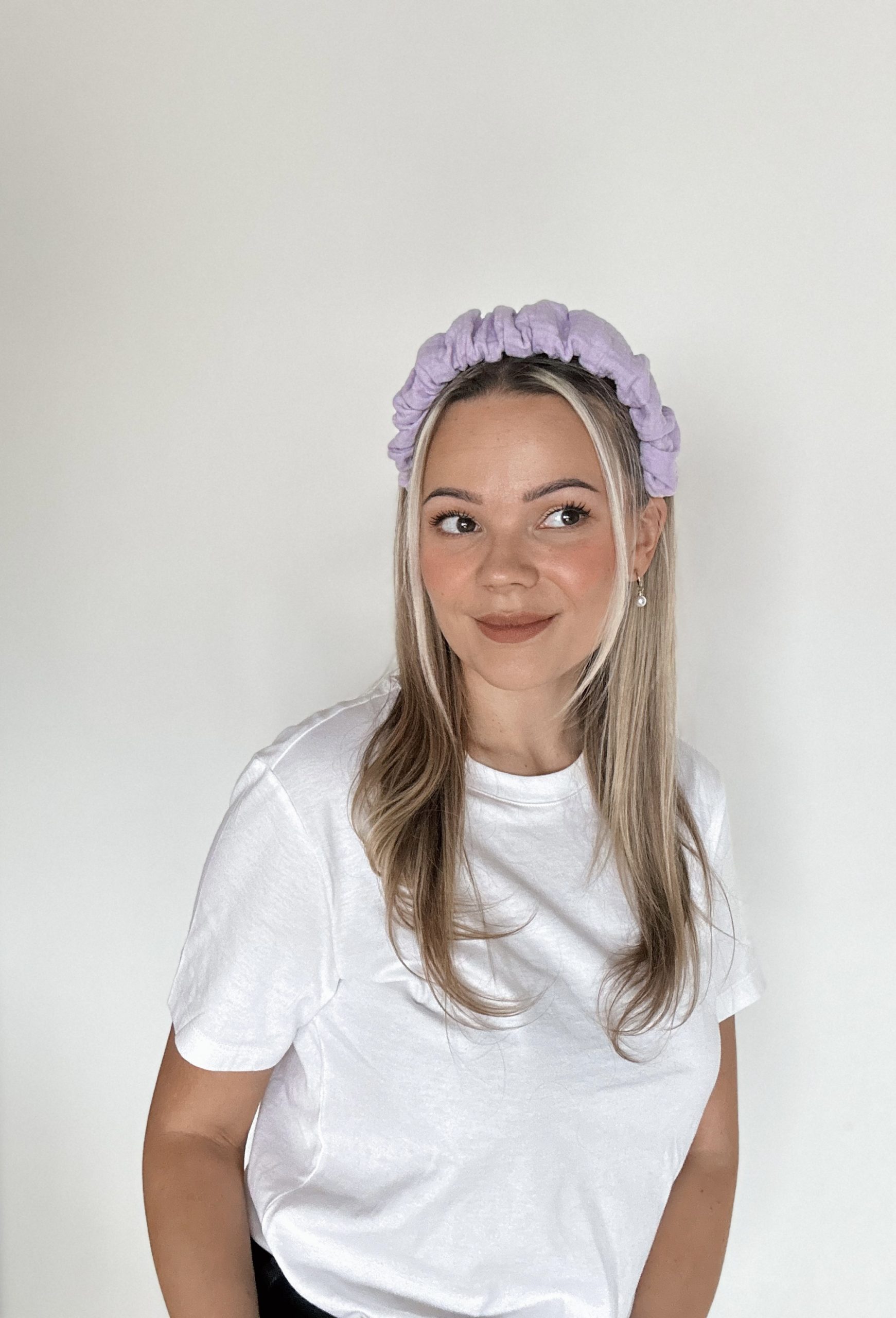 NEILIKKA rypytetty hiuspanta on valmistettu pehmeästä harsokankaasta ja se rypyttyy kauniiksi kruunuksi kantajansa päähän. Hiuspannat pelastavat sinut hiuskriiseiltä ja pitävät kasvojen edessä roikkuvat hiukset kurissa.